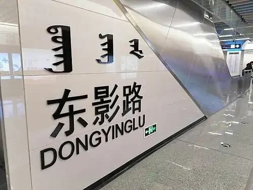 Dongyinglu Station (Chinese: 东影路站) is a station on Line 1 of the Hohhot Metro.[1] It opened on 29 December 2019.[2]