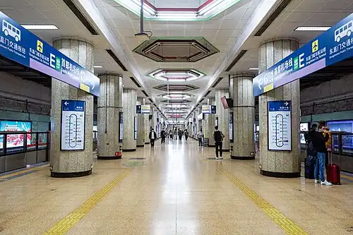 Dongzhimen station[1] (simplified Chinese: 东直门站; traditional Chinese: 東直門站; pinyin: Dōngzhímén zhàn) is an interchange station for Line 2, Line 13 and the Capital Airport Express of the Beijing Subway.