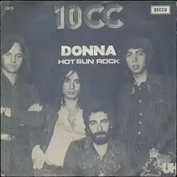 "Donna" is the first single by British art pop band 10cc. Released in 1972, it peaked at No. 2 on the UK Singles Chart in October 1972, spending a total of 13 weeks on the chart.[1] The song was written by Lol Creme and Kevin Godley.