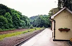 Dore and Totley became south Sheffield's only remaining station after the Beeching cuts in the 1960s saw Beauchief, Millhouses and Heeley stations all close. The station was closed to main line traffic and became an unstaffed halt in 1969. It was renamed Dore on 18 March 1971.[1] Subsequently, the island and eastern platforms were demolished in the mid-1980s. This meant that mainline services from the South could no longer stop at the station. In March 1985, the section of the Hope Valley Line through the station was converted to single-track, with trains in both directions stopping at the one remaining platform.