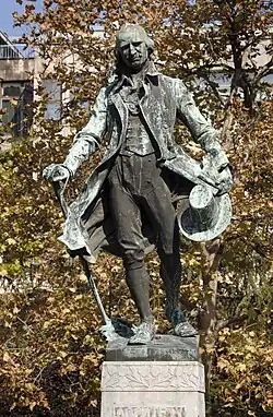 Dositej Obradović died in Belgrade, Serbia, in 1811. He was honored with a large funeral procession and buried in St Michael's Cathedral.[15] A monument to Obradović was errected by the Kalemegan park entrance in 1914. It was moved in 1930 to a prominent spot at the newly opened Academic Park, close to the University of Belgrade administration and governance building, where it still stands.[16][17]