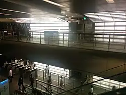 Double lobby ("lower lobby" and "upper lobby") to enter the elevators in Roppongi Hills Mori Tower