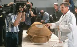 Owsley injected himself into the debate over claims of ownership over Kennewick Man a (Paleo-Indian), which he studied and concluded, erroneously, that its bones were not related to present-day Native Americans.[9][10][11][12] He has been involved in the excavation and identification of historic and prehistoric skeletal remains discovered around the world. As part of his work with the Smithsonian, he has overseen the forensic examination of over 13,000 skeletons and human remains originating from over an estimated 10,000 years.[13] The 1996 discovery of skeletal remains found in Kennewick, Washington, along the Columbia River, uncovered a prehistoric Paleo-Indian man dating back to a calibrated age of 9,800 years, while analysis on the Spirit Cave mummy, established an age of over 10,650 years.[7][14][15][16]