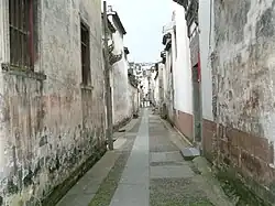 Doushan Street (Chinese: 斗山街) is a historical residential street in She County, Anhui province, China. It was named after a neighboring mountain hill called Doushan by locals. The street is a noted tourist attraction in the area because it is decorated by the Hui-style mansions built by, and for, the brilliant Huizhou merchants who dominated Chinese business and culture for more than 500 years in history. The most obvious feature of the street is the high-walled courtyards. Hui-style architecture, an important branch of the major Chinese ancient architecture, featured black tiles and white walls, wood and brick carving, zigzag flagging, and grand memorial archways.