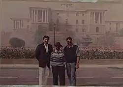 Director Anil Kumar pictured with Babu Antony & Mohanlal, Douthyam (1989).