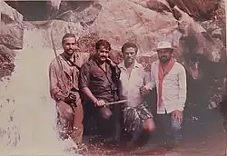 Wrapping up shooting with the cast and crew of Douthyam (1989).