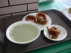 Douzhi (Chinese: 豆汁; pinyin: dòuzhī, literally mung bean milk) is a traditional fermented drink from Beijing cuisine similar to soy milk, with a recorded history of over 300 years. Made as a byproduct of cellophane noodle production, it has a light gray color and a distinct, slightly sour smell,[1] with hints of green vegetables and cooked potatoes.[2]