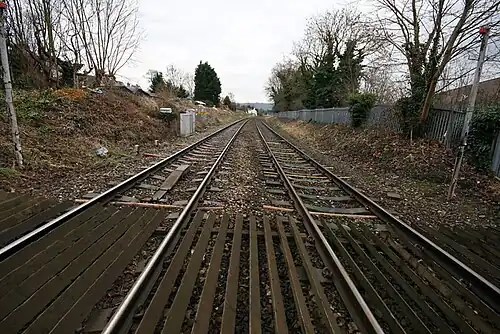 The railway station Downfield Crossing Halt was on what is now the Golden Valley Line between Stroud and Stonehouse in England.