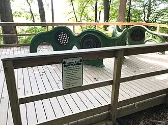 The Sensory Trail opened in October, 2016.[13] It is most readily accessible from the New Brittain road entrance. The sensory trail consists of 9 separate sections, called pods.[13] Some are located along the walking path, and others are within Hart's Woods along a boardwalk. 5 of the pods are wheelchair accessible.[14] Each pod highlights different sensory integration techniques, to help children of all needs (particularly on the autism spectrum) interact with the natural environment.[13] This sensory trail is thought to be one a kind in the state of Pennsylvania.[14] The sensory trail was created in response to the Park and Recreation board wanting to make Central Park more accessible to people of all abilities.[13] The sensory trail cost a total of $442,000 to build, with contributions from the Doylestown Township ($191,000), Foundations Community Partnership ($30,000), Doylestown Lions Club ($30,000), Village improvement Association ($30,000) and a grant from the Commonwealth of Pennsylvania, Commonwealth Financing Authority.[13] Foundations Community Partnership Grant, Boucher & James, Inc., Pickering Corts and Summerson as well as the Doylestown Township board of Supervisors helped with the design and construction of the sensory trail. Further expansion of the sensory trail may be added with more donations.[13]