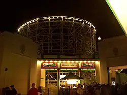 The Dragon Coaster is a wooden roller coaster at Playland amusement park in Rye, New York. Opened in 1929, it was designed and built by amusement ride creator Frederick Church,[1] the co-inventor of the Racing Derby, another early 20th century amusement park ride. The Dragon Coaster has approximately 3,400 feet of track and is, at its highest, approximately 80 feet tall. There is a tunnel along its span, a common feature of wooden roller coasters from the 1920s, that resembles the body and open mouth of a dragon. It was featured in the film Fatal Attraction,[2] the Tom Hanks starring film Big, and the music video for Mariah Carey's song "Fantasy". The Dragon Coaster is still in operation.