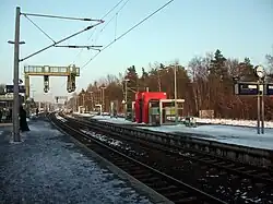 The Dresden-Klotzsche–Dresden Airport railway is a single-track, electrified main line in Saxony, Germany. It runs from Dresden-Klotzsche station on the Görlitz–Dresden railway to Dresden Airport and today it is served exclusively by the Dresden S-Bahn.