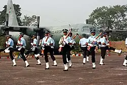 In the Indian Armed Forces, there is currently one unit that is serves as exhibition drill team. This unit, known officially as the Air Warrior Drill Team (AWDT), was founded in 2004 as part of the Indian Air Force. They commonly perform during the Air Force Day Parade at Tezpur Airport on 8 October.[1][2]