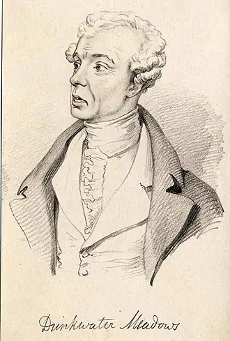 This article incorporates text from a publication now in the public domainKnight, John Joseph (1894). "Meadows, Drinkwater". In Lee, Sidney (ed.). Dictionary of National Biography. Vol. 37. London: Smith, Elder & Co.