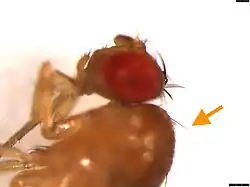 The species D. testacea and D. neotestacea of the Testacea species group can be identified based on the presence or absence of an upward turn on the presutural seta of the mesonotum (anterior dorsal thorax).[1] The Testacea species group is a phylogenetically concise lineage consisting of 4 species. The closest outgroup of Testacea species is the Drosophila bizonata species group.[9][10]