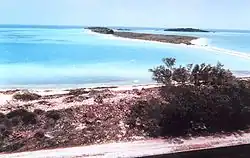 Middle Key, 2.5 km (1.6 mi) east of Hospital key, 90 m (300 ft), area 6,000 m2 (1.5 acres). Due to various seasonal changes, storm patterns and tidal cycles it is not always above sea level, disappearing for weeks or months, only to reappear again.