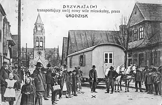 ![]() Drzymała's wagon in Grodzisk Wielkopolski (Grätz), 1908 | |