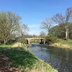The first white settler in DuPage County was Bailey Hobson who, with Lewis Stewart, built a house in 1831 for the Hobson family at a site about 2 miles (3.2 km) south of present-day downtown Naperville.[11][12] Hobson later built a mill to serve surrounding farmers. Today, the Hobson house still stands on Hobson Road in Naperville, and the location of the mill is commemorated with a millstone and monument in today's Pioneer Park.[13]