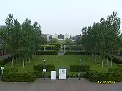 The total area of the main campus is approximately 202,000 m2 (50 acres) and is bordered by Collins Avenue, Albert College Park, Ballymun Road, Hillside Farm and St. Aidan's School. A further 40,000 m2 (9.9 acres) (including Elmhurst House) situated along Griffith Avenue have been acquired. Entrances to the main campus are from Ballymun Road, to the west, and Collins Avenue, to the north.[10][11]