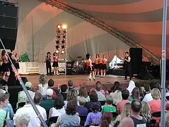 The Dublin Irish Festival is an annual music and cultural festival held in Dublin, Ohio. It takes place during the first weekend of August, attracting over 100,000 visitors to eight entertainment stages on 29 acres (120,000 m2) in and beyond Coffman Park.[1] Activities include Irish and other Celtic music, genealogy, food and drink, dance, cultural exhibits, games, sports, arts and crafts, and children's activities. The Dublin Irish Festival Academy offers a variety of classes led by DIF performers highlighting Irish music and culture.