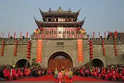Dujiangyan (Chinese: 都江堰; pinyin: Dūjiāngyàn) is a county-level city of Sichuan Province, Southwest China, it is under the administration of the prefecture-level city of Chengdu. Its north-west region forms a border with southern Ngawa Tibetan and Qiang Autonomous Prefecture. It has an area of 1,208 km2 (466 sq mi) and had a population of 710,056 in 2020.[1]
