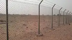Ruins Near Dumah: it is common practice in Saudi Arabia to fence archaeological sites.