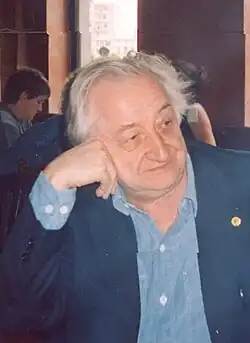 In addition to his literary work, he is known for his independent left-wing views, which were influenced by libertarian socialism and anarchism.[1][2][3] Țepeneag is one of the most important Romanian translators of French literature, and has rendered into Romanian the works by New Left, avant-garde and Neo-Marxist authors such as Alain Robbe-Grillet, Robert Pinget, Albert Béguin, Jacques Derrida, and Alexandre Kojève.[4] The founder of the magazine Cahiers de l'Est, he has also translated texts by Romanian poets into French — examples include Leonid Dimov, Daniel Turcea, Ion Mureșan, Marta Petreu, Emil Brumaru, Mircea Ivănescu.[4] His wife, Mona Țepeneag, is herself a translator and essayist.