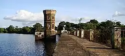 Khandari Dam is a spill-type dam constructed by J.H. Morris, Chief Commissioner of Central Provinces and Berar. Construction was completed on 26 February 1883, to supply water to 1/3rd of Jabalpur City. The dam's capacity is 6.30 Million cubic metres and its water supply capacity is 6.75 to 9 MLD.[3]