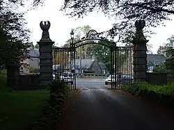 The Tower lodges and gates at Loch of Skene are also category A listed.[20] Several other structures within the estate are designated category B including the lodges.[21] The formal gardens are sited to the west and south of the mansion and feature two large terraces designed by Aston Webb in the early 20th-century.[8]