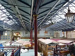 In the late nineteenth Century, fairs for horses, sheep and horned cattle were regularly held in the Market Hall and twice a year servants' hirings were held. Originally the Market was only open on a Saturday, when trading finished at 11pm with the ringing of the Market Bell, an example of which can still be seen today hanging in the Balcony Bistro.[1]