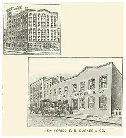 Durkee's was established by Eugene R. Durkee, the founder of E. R. Durkee & Co. Spice dealers in Buffalo, New York, in 1857. By 1917, the company had built a four-story industrial structure in Elmhurst, Queens.[3][4] Durkee became the largest factory and employer in Elmhurst, with over 300 employees, primarily women. E.R. Durkee died in 1926, leaving everything to his daughters.[5]
