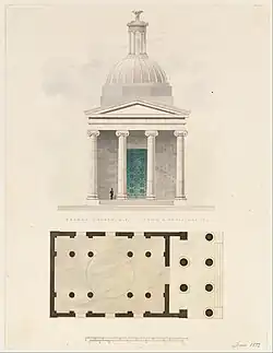 Davis based the design on Town & Davis' recent Church of the French Protestants (1832) in New York
