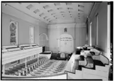 Nevertheless, the next year the city claimed the church as an urban-renewal parcel, and the next year its Urban Renewal Agency paid $96,000 for it.[10] Public efforts against its demolition led to the church's addition to the National Register of Historic Places in 1970, which meant that federal funds could no longer be used to demolish it. Newburgh had in the past taken the lead in historic preservation when Washington's Headquarters had become the first officially designated historic site in the U.S. in 1850. The battle to save the church revived this tradition and marked the beginning of the city's modern historic preservation movement.