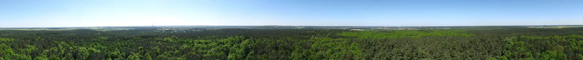 An observation tower, with a height of 40 metres (130 ft), was built at the summit of the hill in 2005. This is used for forest fire observation, and is also open to the public at certain times, offering wide views of the surrounding countryside and the city of Poznań.