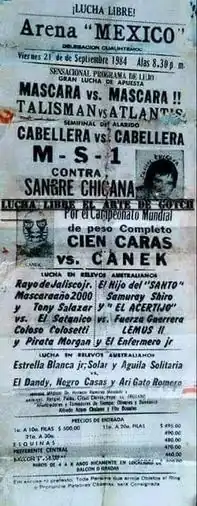 12. ^ a b c d Atlantis CMLL (September 21, 2019). "Mi primera lucha de máscara vs máscara en el año 1984" (in Spanish). Retrieved September 21, 2019.