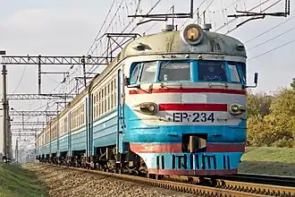 ER1 electric trainset (Cyrillic: ЭР1) was manufactured by Rīgas Vagonbūves Rūpnīca between 1957 and 1962 for suburban commuting usage within the Soviet Union on lines electrified on 3000 V, DC.