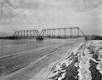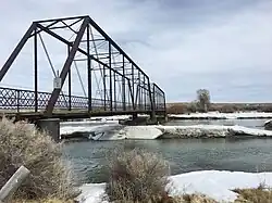 The ETR Big Island Bridge is a Pratt through truss bridge located near Green River, Wyoming, which carries Sweetwater County Road CN4-4 across the Green River. The bridge was built from 1909 to 1910 by contractor Charles G. Sheely. It was named the Big Island Bridge after the Big Island region of Wyoming, which the bridge connected to other parts of the state. The 352-foot (107 m), two-span bridge is one of the older Pratt through truss bridges in Wyoming, and its spans, each 155 feet (47 m) long, are some of the longest on bridges of this design in the state.[2]