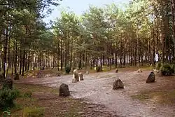 The Paleolithic Ahrensburg culture was succeeded by the early Mesolithic Maglemosian culture (8000-6000 BC), whose members were not only hunters, but also foragers and fishermen.[16] According to their tools, they are grouped as first belonging to the Komornica (east) and Duvensee culture (west), later to the Chojnice-Pienki culture (east).[22][23][24] They settled the dunes and used flint stone microliths.[24][25]