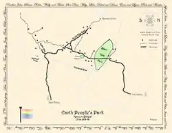 During the mid-1970s, the non-profit trust Earth Peoples Park Inc. also purchased a remote 83-acre (340,000 m2) parcel of forest lands situated in Del Norte County, California. Located on Chrystal Mountain within Jedediah Smith Redwoods State Park, that 83-acre (340,000 m2) piece of property apparently remains open to visitors.