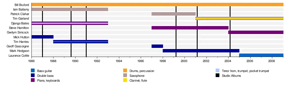 10. ^ Timeline on Bill Bruford homepage (1997) Archived 21 August 2008 at the Wayback Machine, accessed 19 September 2009)