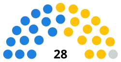 Following the 2023 election, a by-election in April 2024, a change of allegiance in August 2024, a resignation in March 2025 and a by-election in May 2025, the composition of the council is:[17][18][19]