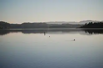 California State Route 20 runs east from Route 101 to the north of Ukiah. It skirts the north shore of Lake Mendocino and then crosses East Fork Russian River near the northeast corner of the lake. It follows the river for about two miles, then turns to the southeast along Cold Creek. Potter Valley Road continues from Highway 20 along East Fork Russian River, which it crosses twice before reaching Potter Valley.[13] McKee Park is in the south of Potter Valley beside the Potter Valley Road and stretches along the East Fork Russian River for about 2 mi (3.2 km). This section of the river is shaded by various types of native oaks and bay trees. The waters may be dangerous, and there are no attendants, but visitors may wade, swim or fish along the river.[14]