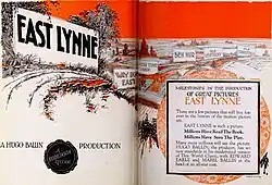 East Lynne is a 1921 American silent drama film directed by Hugo Ballin and starring Edward Earle, Mabel Ballin and Henry G. Sell.[1] Now considered a lost film, it is one of numerous film versions of Ellen Wood's 1861 Victorian novel East Lynne.