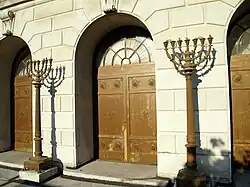 The synagogue building has remained architecturally unchanged since its construction, and was from the 1990s until 2010 the only synagogue in Brooklyn with a functioning swimming pool.[5] In June 2006, it was added to the NRHP.[6] That year the congregation received a $300,000 loan from the New York Landmarks Conservancy for repairs for "masonry and steel repairs on the side and rear facades."[31] It also raised $40,000 in order to receive a 2:1 "matching grant" of $20,000 from the Conservancy, and completed the repair work in 2007.[31] In November 2007 East Midwood was awarded a $409,575 New York State Environmental Protection Fund grant to "restore features of the sanctuary including stained glass windows, stained glass dome and skylight."[32][33]