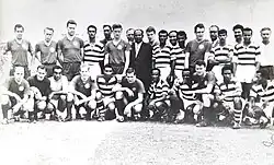 Under the captaincy of Zahirul Haque,[34] East Pakistan defeated Karachi Greens 3–1 in the round-robin league on 12 November, with Yaqoob scoring a hat-trick.[35] On 18 November, the team secured a 5–0 victory over Pakistan Railways.[36] They eventually reached the final, held on 27 November, where a goal in the 75th minute by Musa Jr. clinched the team’s first-ever National Championship title in a match against Karachi Whites.[2][37][38]