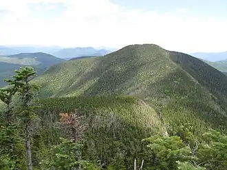 The East Peak of Mount Osceola is one of the official New Hampshire 4000-footers, standing at an elevation of 4,156 feet (1,267 m).[2] East Osceola's prominence is between 316 feet (96 m) and 356 feet (109 m), with the key saddle between it and Mount Osceola.[1] It can be approached via the Greeley Ponds trail from the Kancamagus Highway or from the summit of neighboring Osceola. Both routes are not without difficulties; the trail from the ponds is extremely steep and prolonged, and the approach from Osceola contains a chimney, along with a less hazardous bypass by way of the saddle connecting the peaks. The summit is undistinguished and surrounded by trees.