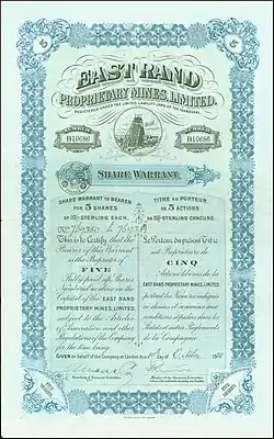 Share of the East Rand Proprietary Mines Ltd, issued 19 October 1928