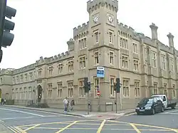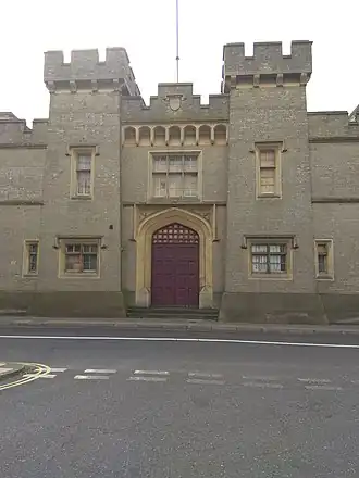 The oldest part of the building was designed by William McIntosh Brooks in the Tudor style and completed in 1837.[1] The design for this building, known as the "main entrance block", involved a roughly symmetrical 150 feet (46 m) main frontage facing St Helen's Street; the central section featured an arched doorway on the ground floor and a transomed window on the first floor flanked by twin castellated towers; there were also castellated side wings and two end pavilions which were slightly projected forwards.[1]