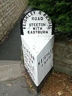 Eastburn is a village within the Steeton with Eastburn civil parish, in the City of Bradford Metropolitan District, West Yorkshire, England. The road through Eastburn is approximately 1/2 mile long and has a post office. The village also contains a school (Eastburn Junior & Infant School), a small chapel, a farm, a factory and a former mill building which houses many businesses.