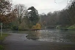 There is a lake with a serpentine shape which is bordered by lawns and old beech trees.[2] There are two children's playgrounds, football pitches, tennis courts, a basketball court, a one-mile running circuit and a bowling green.[1] The River Frome borders the Northern edge of the park. The boathouse to the lake was burned down in 1913 and again 1923. There is a disused Victorian lido which was hit by a bomb in World War II[4] that has been used as a theatre.[5] Eastville parkrun takes place at the park every Saturday morning,[6] with the junior parkrun taking place every Sunday.[7] The park has an area of 70 acres.[2]