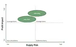 eBidding can be used if the demand/the product can be specified, if the costs are reasonable with regard to the procurement volume and if multiple suppliers exist who show interest in selling the product using an eBidding. Furthermore, competitiveness needs to exist among the suppliers including dynamic prices. [2] Based on the "Kraljic Portfolio Purchasing Model", the demanded products and services can be categorized by the two criteria „Profit Impact" and „Supply Risk". Products and services with a low Profit Impact and a low Supply Risk are called "Non-Critical Items". As Roland Bogaschewsky describes them in his essay "Electronic Procurement - Katalog-basierte Beschaffung, Marktplätze, B2B-Netzwerke",[3] they are usually offered by many suppliers and are of little value. Non-Critical Items should therefore be purchased rather cost-effectively. "Bottleneck Items" are products and services which rank high on the Supply Risk dimension and low on the Profit Impact dimension. These items are also usually of little value. The high Supply Risk can be minimized by establishing alternative sources of supply. Products and services which have a high Profit Impact and a low Supply Risk are categorized as "Leverage Items". In this case, usually many suppliers offer these rather expensive items. This leaves room for intensive negotiations and auctions. "Strategic Items" rank high on Profit Impact and high on Supply Risk. Usually only very few suppliers offer these costly items. This categorization makes it possible to choose the method of procurement accordingly. Based on the essay by Roland Bogaschewsky, there need to be enough suppliers for a successful auction and the effort only pays off when dealing with articles that have a high profit impact. Therefore, Leverage Items are predestinated for eAuctions, creating a high competitive pressure which leads to lower prices. An eBidding does not create as much pressure and leaves room for strategic decisions. Therefore, an eBidding is also suitable for items that rank higher on the Supply Risk dimension but are still offered by enough suppliers